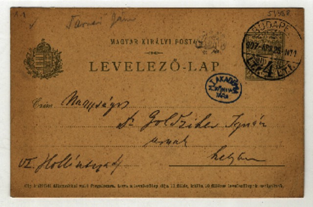 Tarnai, János János Tarnai's letter to Ignaz Goldziher. , [Budapest] (Kézirat)