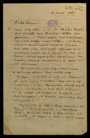 Szemere, Miklós (1861) Szemere Miklós levele Arany Jánosnak. , Lasztóc (Kézirat)