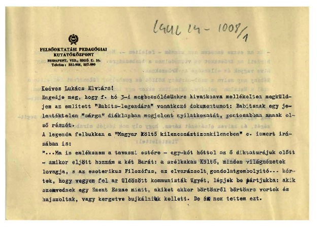 Ladányi, Andor (1969) Ladányi Andor levele Lukács Györgynek. , Budapest (Kézirat)