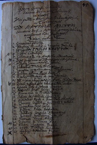 MEGHATÁROZATLAN (1686) Könyvtári kutatások. Nagyszeben = Library research. Sibiu. Lutheránus Levéltár (ZAEKR). Gimnazium Hermannstadt. (Kézirat)
