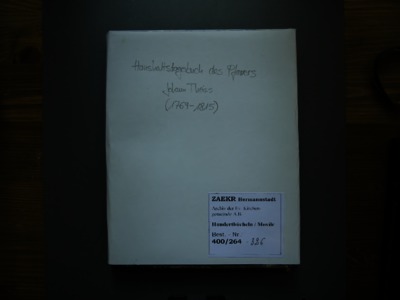 MEGHATÁROZATLAN (1769) Könyvtári kutatások. Nagyszeben = Library research. Sibiu. Lutheránus Levéltár (ZAEKR). Johann Theiss Haushaltstagebuch 1769-1815. (Kézirat)