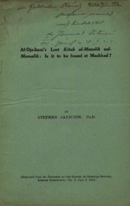 Janicsek, István (1928) Al-Djaihani's Lost Kitab al-masalik val-Mamalik : Is It to be found at Mashhad? , London (Kézirat)