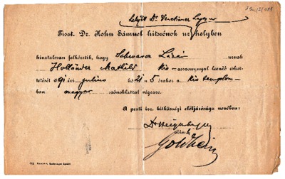 Venetianer, Lajos (1891) Venetianer Lajos felkérése esküvői szertartás elvégzésére. (Kézirat)