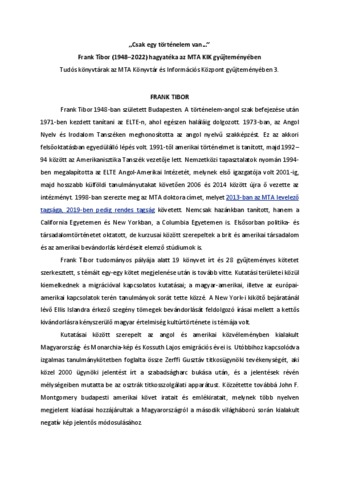 MEGHATÁROZATLAN (2025) Frank Tibor hagyatéka az MTA Könyvtár és Információs Központ gyűjteményében. MTA Könyvtár és Információs Központ., Budapest (Kézirat)