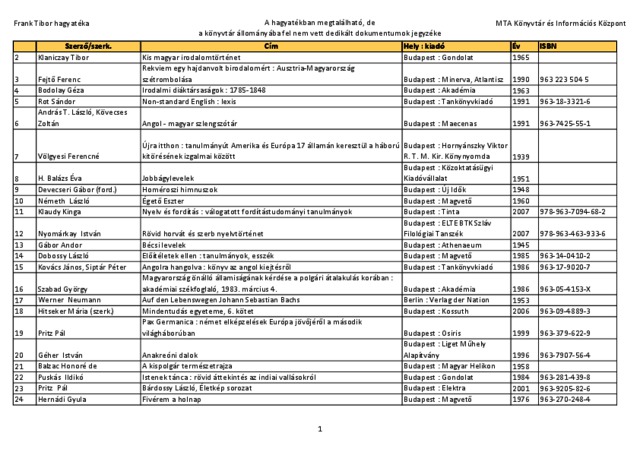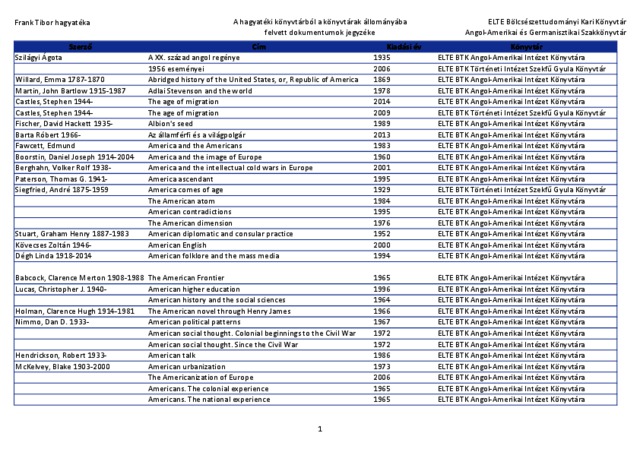 PDF (A hagyatéki könyvtárból az Eötvös Loránd Tudományegyetem Bölcsészettudományi Kari Könyvtár Angol-Amerikai és Germanisztikai Szakkönyvtár tulajdonába került dokumentumok jegyzéke)