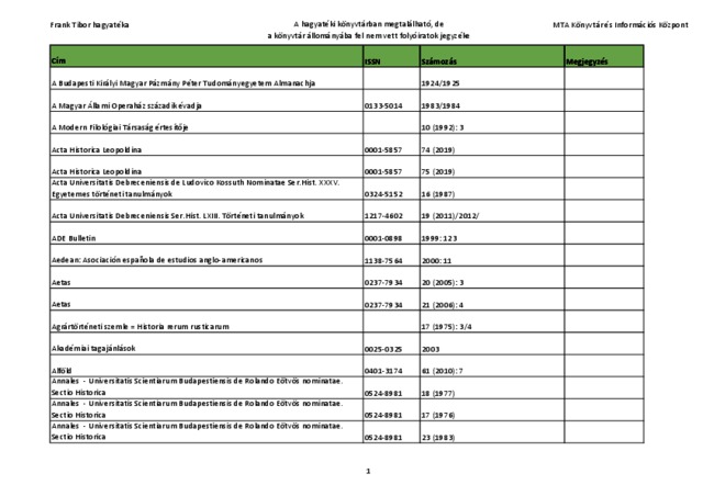 PDF (A hagyatékban megtalálható, de az MTA KIK állományába fel nem vett folyóiratok jegyzéke)