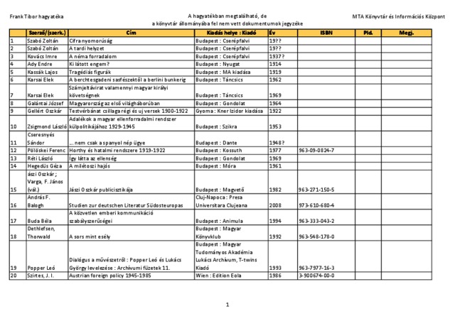PDF (A hagyatéki könyvtárból az MTA KIK állományába felvett dokumentumok jegyzéke)