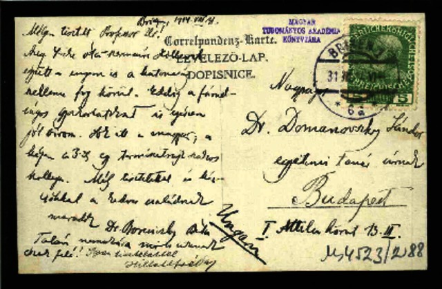 Borsiczky, Béla (1914) Borsiczky Béla levele Domanovszky Sándornak. (Kézirat)