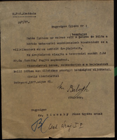 MEGHATÁROZATLAN (1927) A Magyar Tudományos Akadémia iratai, 1927 (3.doboz). (Kézirat)