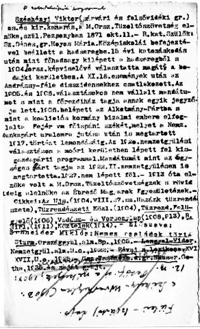 Gulyás Pál (1881-1963) jeles irodalom- és könyvtörténész, bibliográfus, akadémikus vállalkozott arra, hogy folytassa Szinnyei József: Magyar írók élete és munkái című művét. A ma is nélkülözhetetlen lexikonból 1939 és 1944 között A-Dz betűig hat kötet jelent meg. A lexikon alapjául szolgáló gyakran kézírásos, rossz alapanyagú, másodlagosan felhasznált papírdarabokra írt cédula-anyag az MTA Könyvtára Kézirattárába került. 1990 és 2002 között Viczián János sajtó alá rendezte E-től Ö betűig a cédulákat. Állandó az igény a Gulyás-féle anyag iránt, a cédulák azonban rossz állapotban vannak. Az IHM „24. óra – Kulturális kincseink digitalizálása” címen kiírt nyertes pályázata segítségével állagvédelmi okból az MTA Könyvtára digitalizálta (2004), s az internetre feltéve a széles nagyközönség számára hozzáférhetővé tette a hiányzó P-Zs betűk céduláit. |