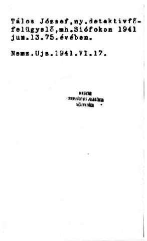 Magyar írók élete és munkái. Cédulatár : Tálos Tánczos.