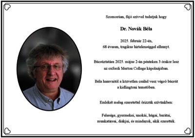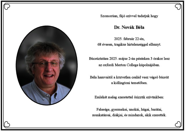 MEGHATÁROZATLAN (2025) Gyászjelentés - Novák Béla (1956-2025) rendszerbiológus. (Kézirat)