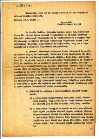 Kodály, Zoltán és Kodály Zoltánné Péczely, Sarolta (1967) Kodály Zoltán végrendeletével kapcsolatos jogi beadványok és iratok. (Kézirat)