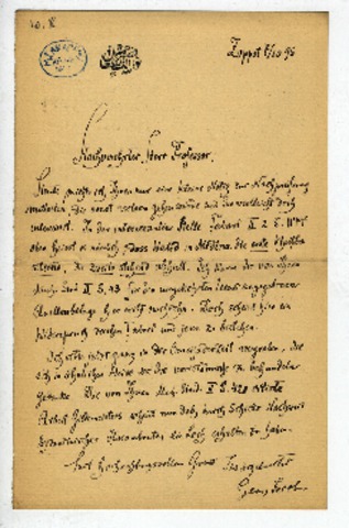 Jacob, Georg (1895) Georg Jacob's letter to Ignaz Goldziher. , Zoppot (Kézirat)