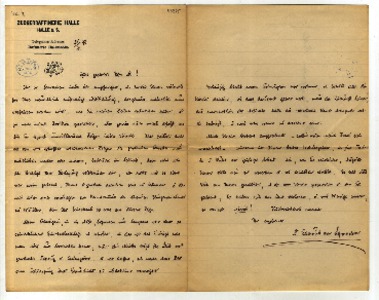 Lippmann, Edmund Oskar (1892) E. von Lippmann's letter to Ignaz Goldziher. , Halle a. S (Kézirat)